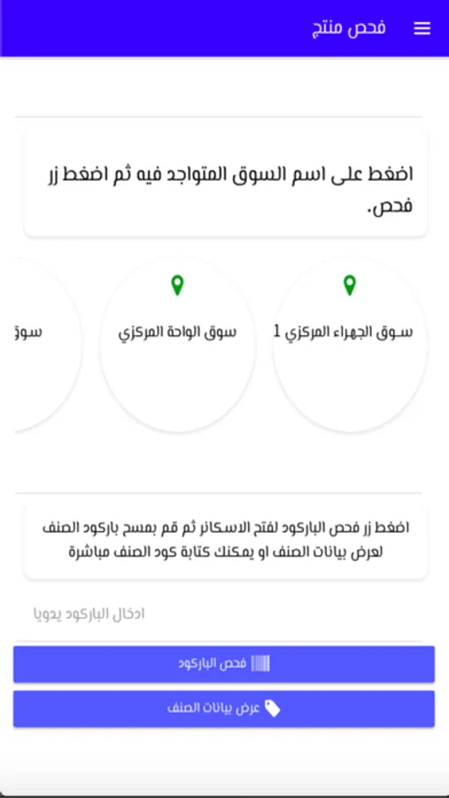 3-Item Scanner : in this screen the user select the branch and then press check button to read barcode to get item data, if the user try to scan item not related to hyper market then we return data with item not found with zero price.