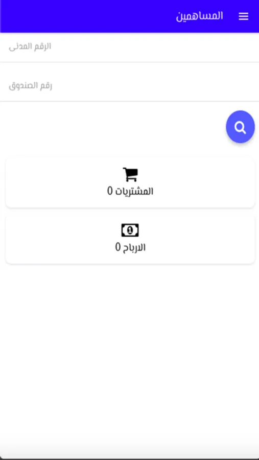 2-Share Holders (Share holders of the hyper market): in this screen the user enter his civil id number and his box no number to get his purchase and his profit for the current year.