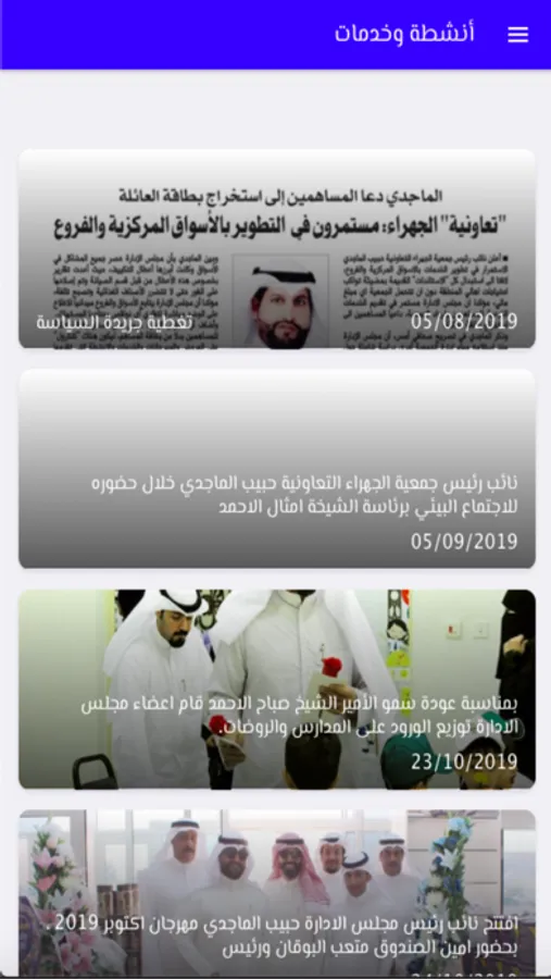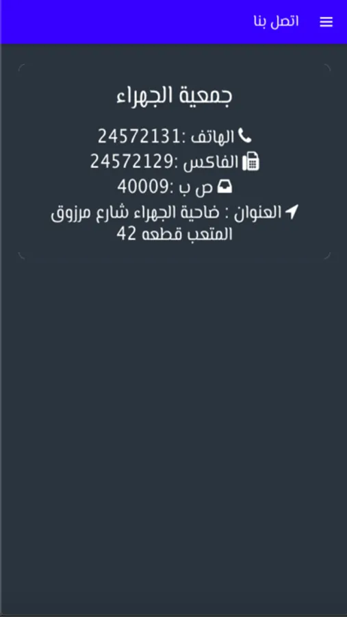 تطبيق خاص بجمعية الجهراء لمتابعة أخبار الجمعية وعروض الجمعية والاستعلام عن اصناف الجمعية ، والاستعلام عن بيانات المساهمين ومشتريات المساهمين وارباح المساهمين ومعرفة بيانات فروع الجمعية, ومعرفة سعر اى صنف فى جميع افرع الجمعية
