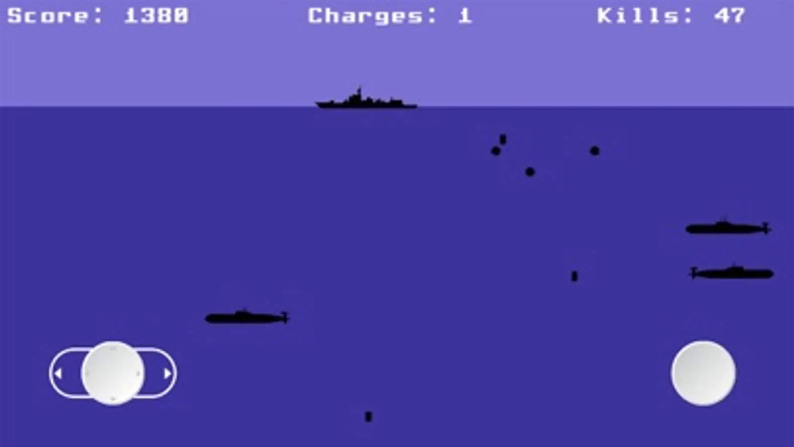 Just like the retro 70s or 80s game, the goal is simple. Kill as many submarines as possible before you get killed. Your only weapons are barrel-shaped depth charges fired from your destroyer.