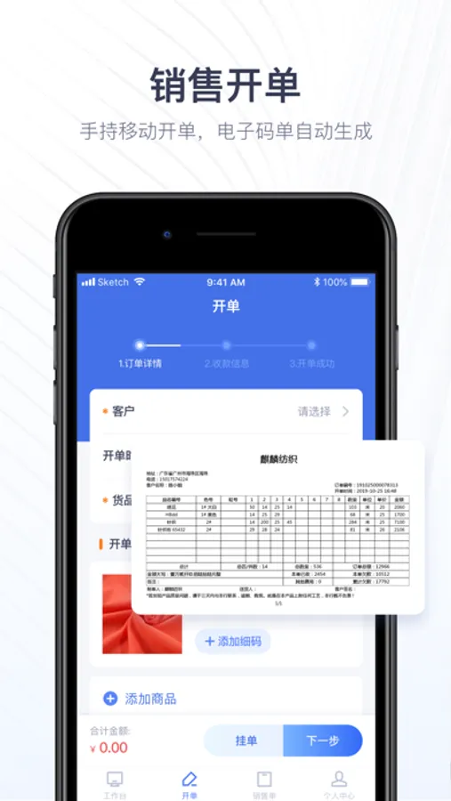 快捷开单:简单3步,随时随地移动开单,告别人工手写时代!