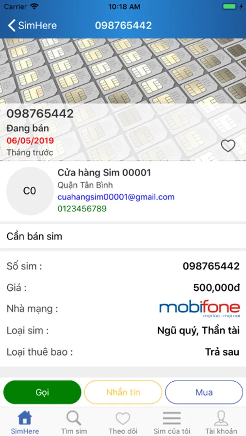 - Liên lạc với người bán sim thông qua goi điện trực tiếp, SMS và chát với người bán sim