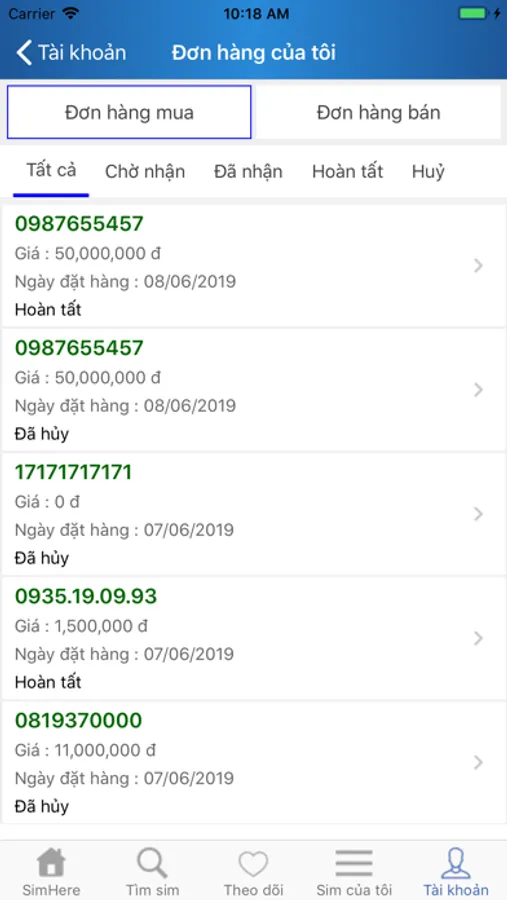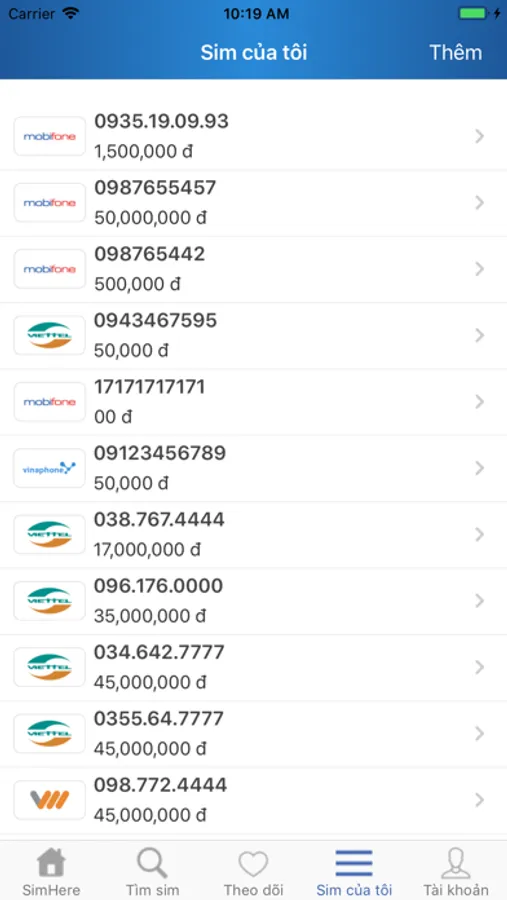 - Bạn có thể thêm một số sim vào danh sách theo dõi (hoặc người bán vào danh sách này)
