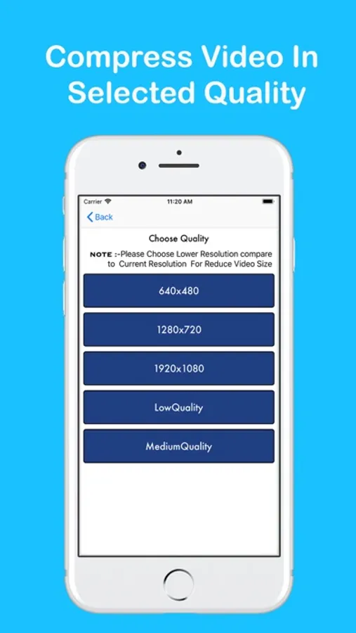 You can compress video in different different Video qualities like low, medium, 640 * 480, 1280 * 720, 1920 * 1080