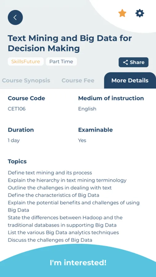 We offer broad range of courses to prepare you for the priority and growth sectors in Singapore’s economy. Download our app to choose from our wide range of courses. Course duration from 1 day to a few weeks.