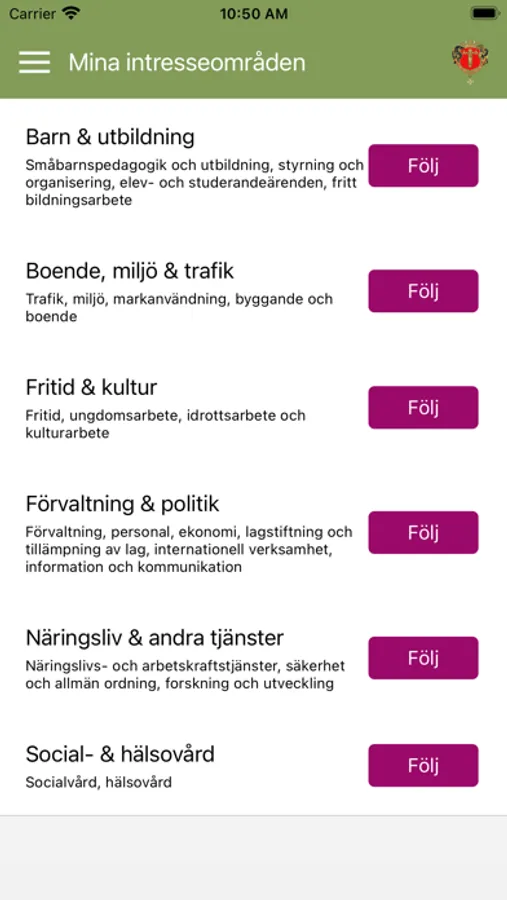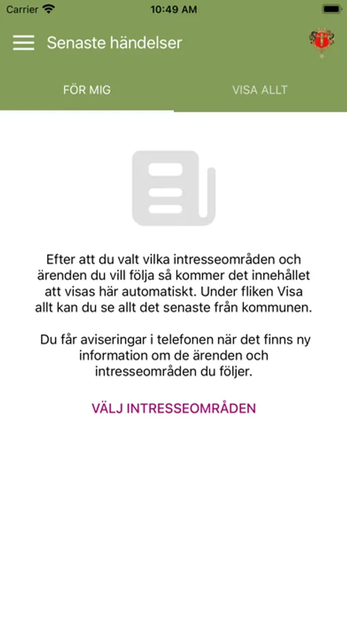 Appen ger dig möjlighet att följa ärenden och intresseområden. Du kan också se senaste nytt från kommunen, söka i kommunala dokument och se vem som sitter i olika organ. Tanken är att det ska vara enkelt att följa med de frågor du är intresserad av.