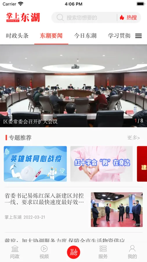 掌上东湖由南昌东湖区融媒体中心出品,为市民提供本地融媒体新闻资讯及服务资讯。主要内容有: