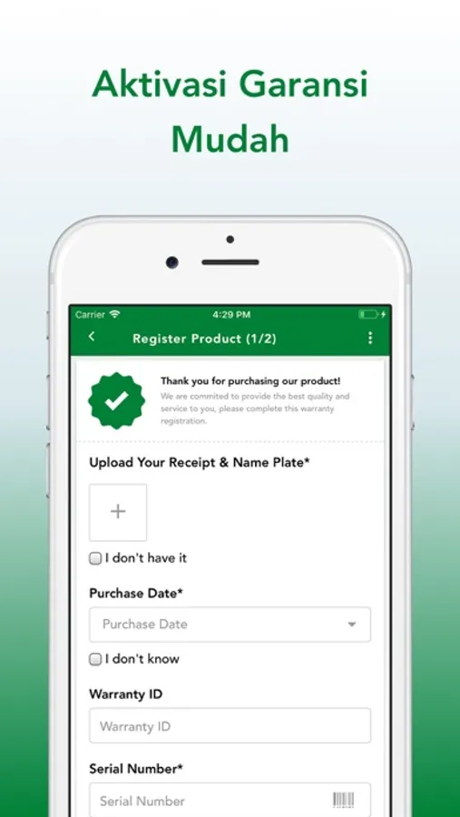 Mobile App by PT. Aditya Retail Indonesia for Product Warranty and Service.