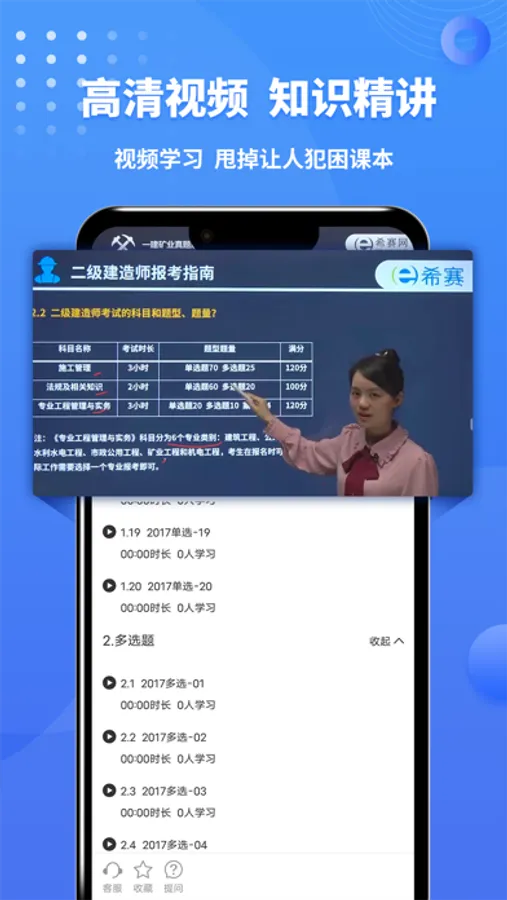 时间不够,听课来凑,一级建造师助手app里各种免费公开课、知识点讲解视频、一级建造师考试历年真题,答案解析等你来,手机观看更加智能便捷哦。