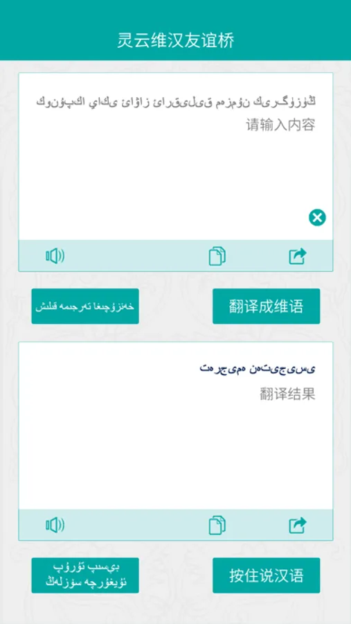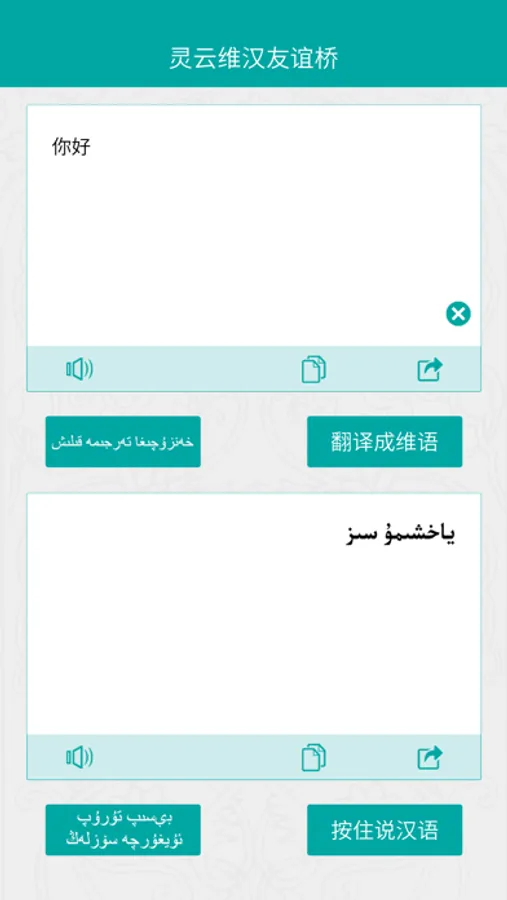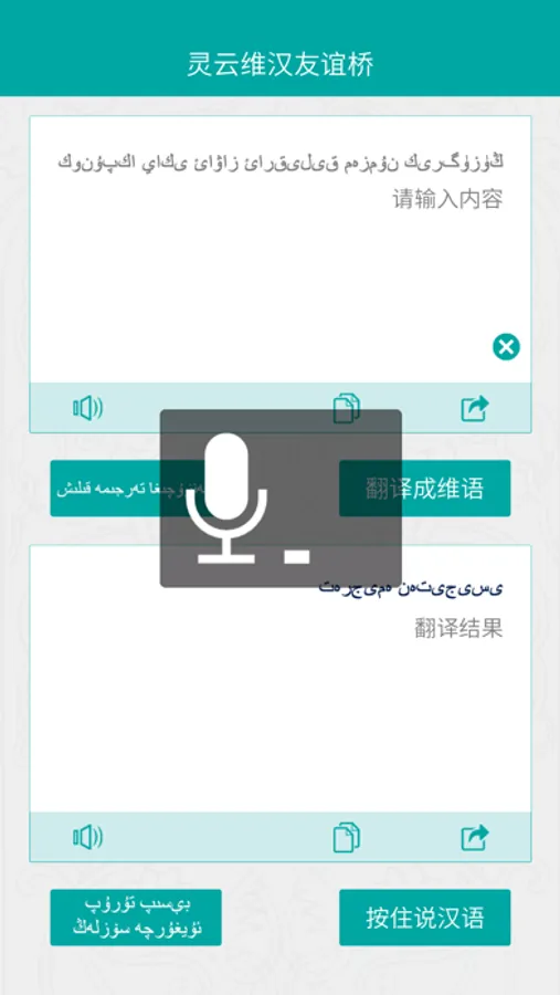 在使用方法上,更是简单易用,只需按住维语按钮说维语,即可自动翻译成汉语并朗读;同理,按住按钮说汉语,即可自动翻译成维语并朗读。