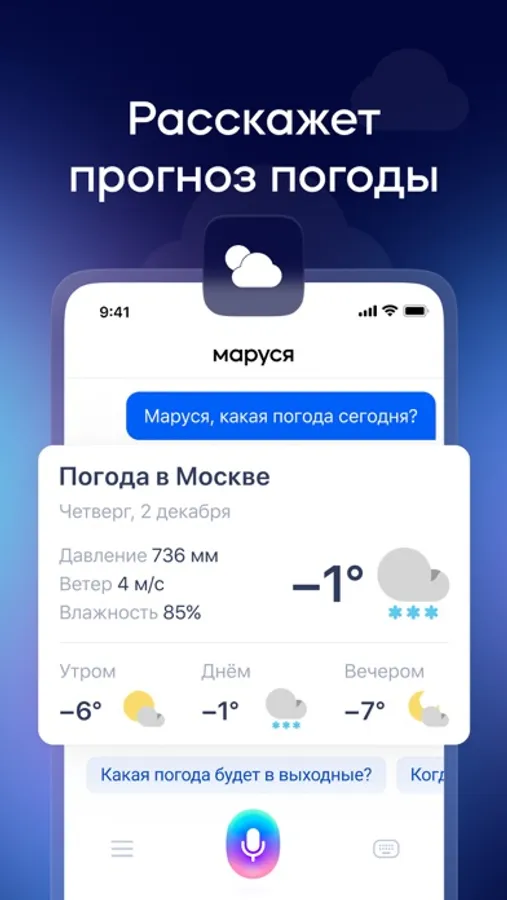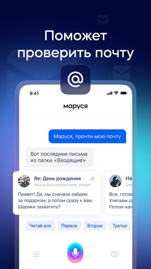 Познакомьтесь с Марусей — голосовым ассистентом. Она умеет отвечать на вопросы, выполнять поручения и всегда вас поддержит.