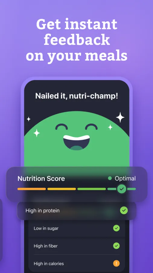 • instant feedback on your logged meals to empower you to make healthier choices over time