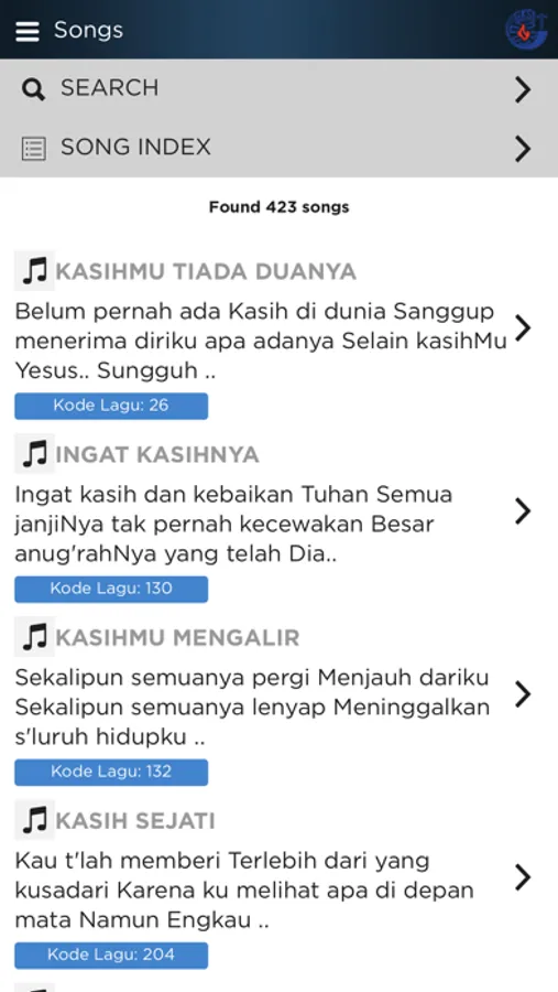 - Song lyric search to make user / church congregation easy to find worship song lyric quickly.