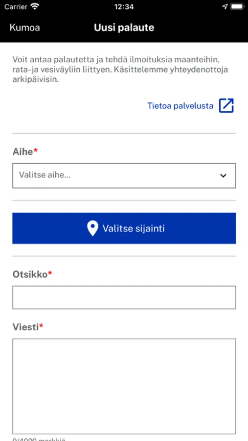 Sovellus sisältää lisäksi Palauteväylän, jonka kautta voit tehdä ilmoituksia väylien kunnosta ja liikenteen sujuvuudesta. Tiedot välittyvät sovelluksen kautta Liikenteen asiakaspalveluun.