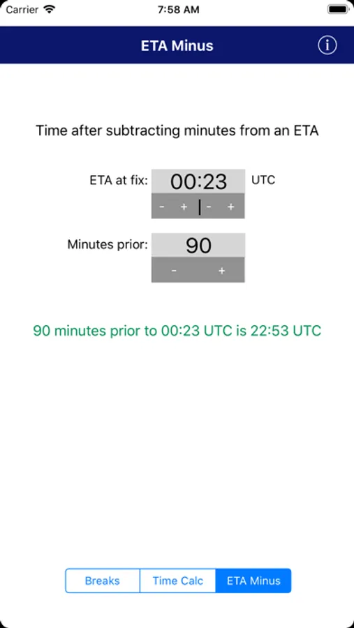 - Time calculator: It does adding, subtracting of hours and minutes, with display of 2/3 or 1/2 for logging time for 3 and 4 pilot crews.