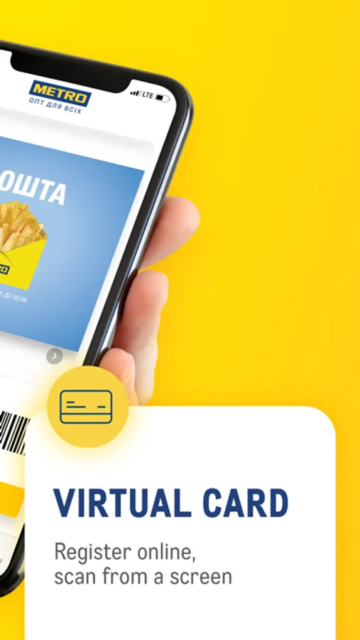 Register your METRO card in the app and use it at the cash desk to make the purchases. Everyone can get their card in a few minutes.
