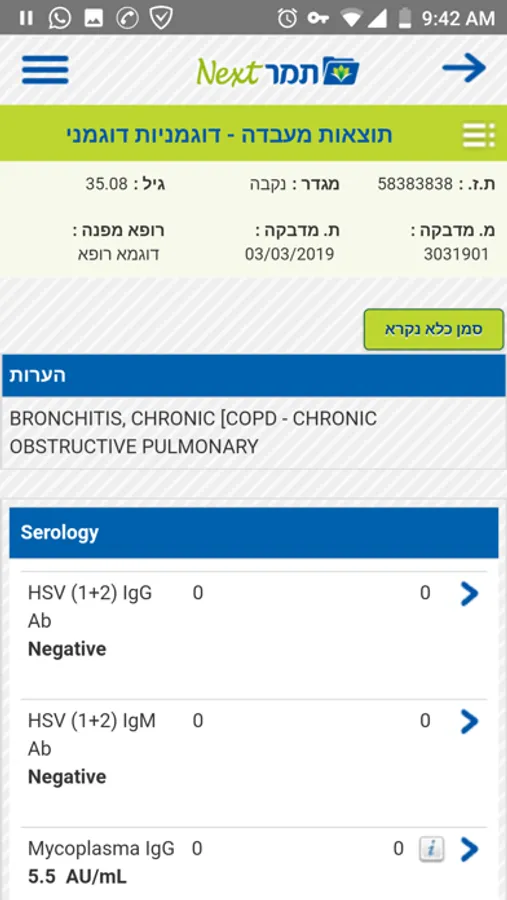 מאפשרת צפיה בתוצאות מעבדה מחוץ לעבודה במשרד.