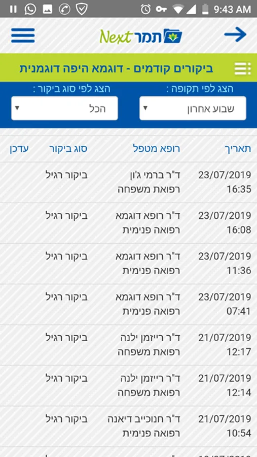 ניתן לאתר מטופל ולצפות בתקציר תיק וביקורים קודמים.