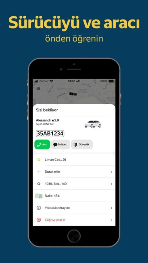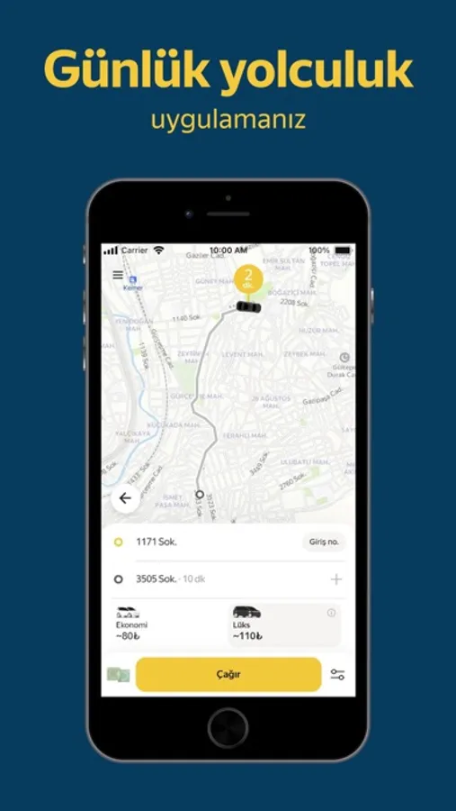 En Taksi uygulaması ile yolculuk öncesi ödeyeceğiniz yaklaşık ücreti, süreyi ve mesafeyi önceden görebilirsiniz.