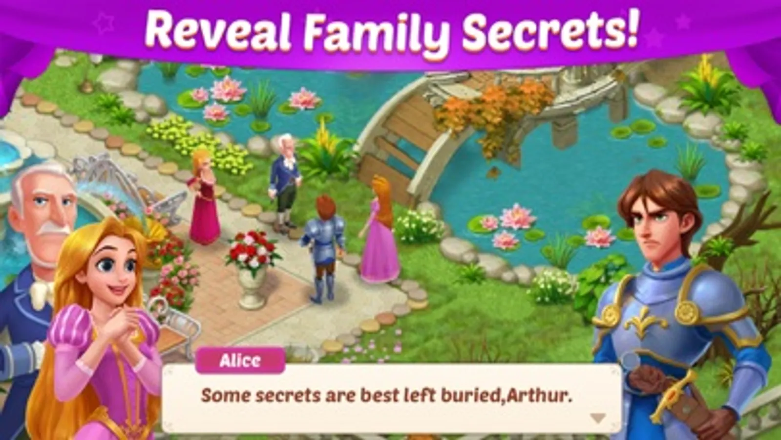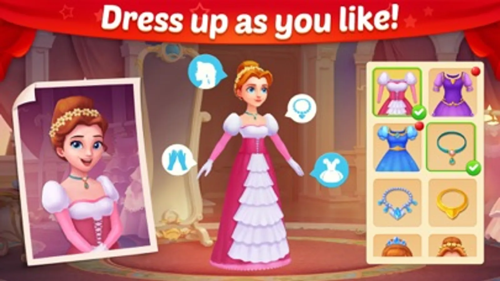 Decorate and renovate the castle by beating match-3 levels! Makeover each room with a large selection of classical furnitures and exquisite decorations, including your personal bathroom and garden.