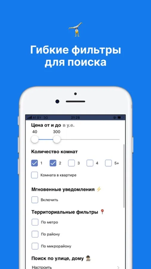 • Выбрать районы или микрорайоны, в которых хочешь жить, и получать уведомления только по ним.