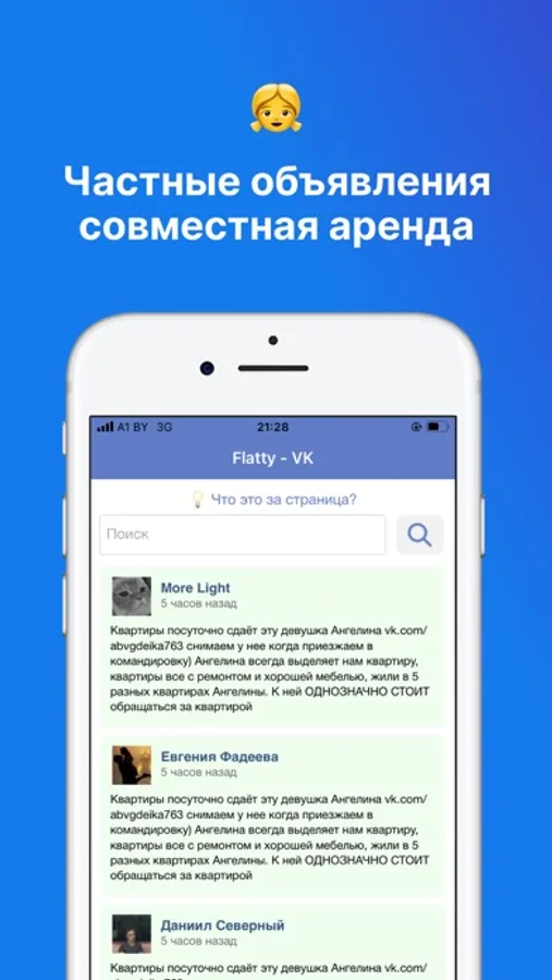 • Ищите людей для совместной аренды и пишите напрямую собственникам через вкладку VK