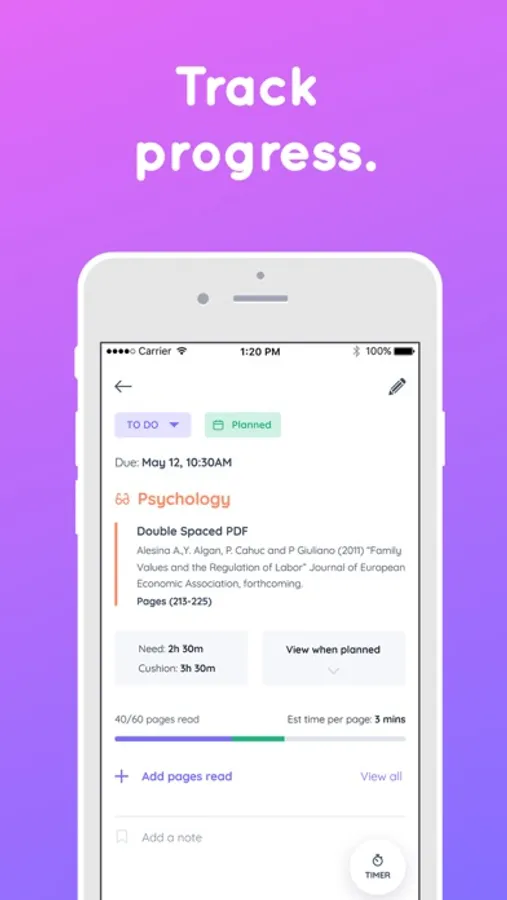 • Adjust estimated reading times with one click and instantly see how it affects your schedule