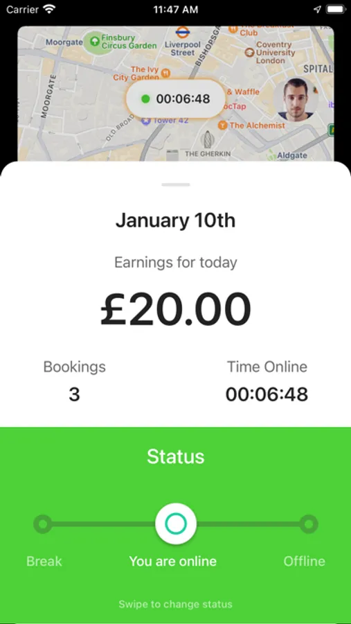 This app allows drivers to receive bookings and progress them using a simple interface.