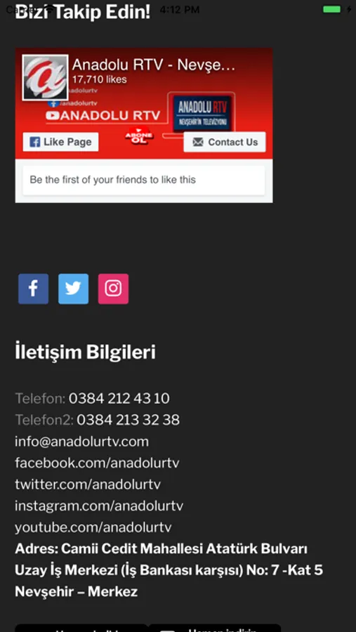 And Anadolu RTV Nevşehir Ulusal televizyon kanalı olmakla beraber bünyesinde Kent Haber 38 Gazetesini de barındırmaktadır. Canlı yayın izleyebilir haberleri okuyabilirsiniz.