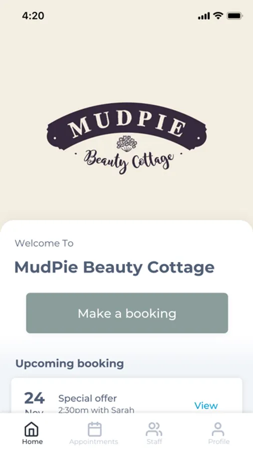 The MudPie Beauty Cottage app makes booking your appointments and managing your loyalty points even easier. You're just a few taps away from feeling good and looking great!