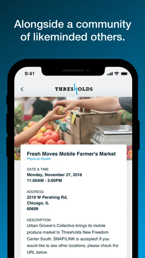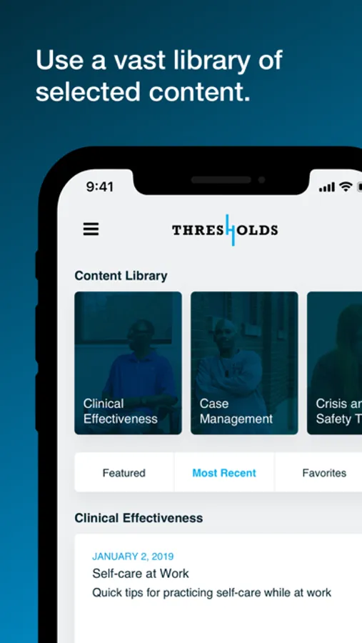 Thresholds Connect provides quick access to resources and essential tools for daily use. Created by The Thresholds, Thresholds Connect is a mobile app designed to help employees and volunteers in the mental health field provide the best services in the community. Use Thresholds Connect for clinical tools, tracking time and productivity, crisis alerts and safety, case management and community resources, events, meeting locations, staff directory and more.