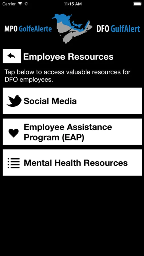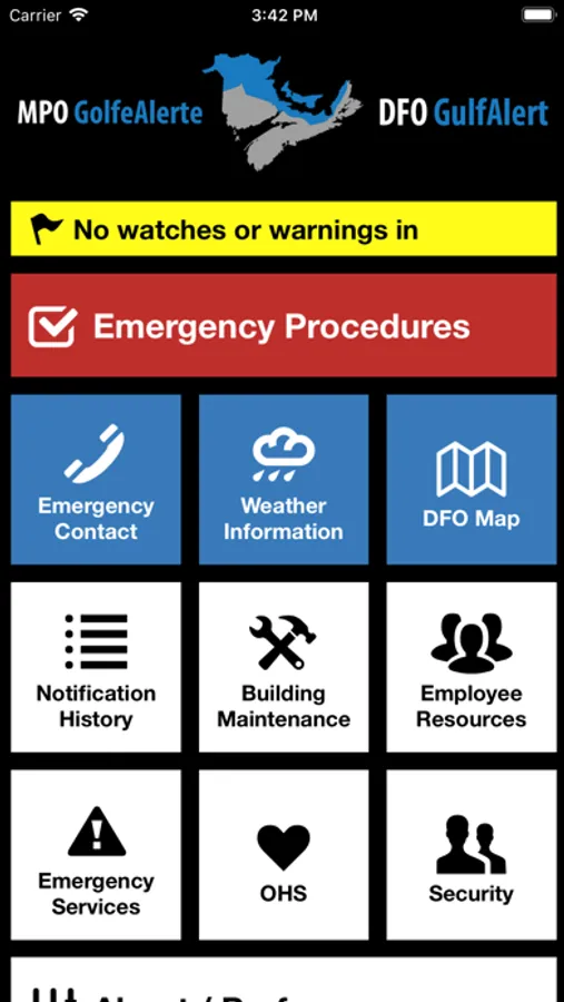 With DFO GulfAlert, be quickly alerted to emergency situations that affect Fisheries and Oceans Canada or reach out directly to security services when you need help. Additional features include easy access to employee resources, a safety toolbox, and more.