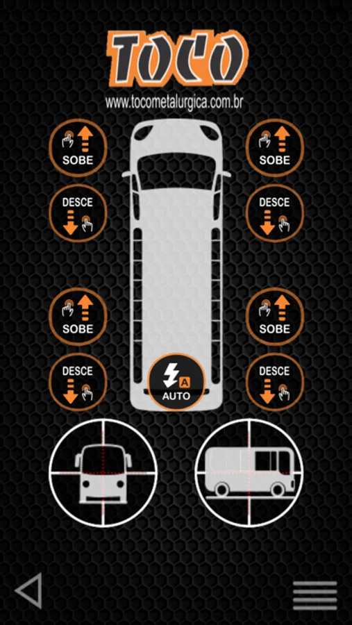 Esse aplicativo permite o controle remoto do sistema de nivelamento TOCO.