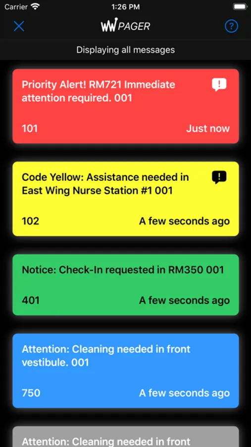 The WaveWare Pager app is designed to display notices generated from the WaveWare Serial Network Alert Processor (SNAP).