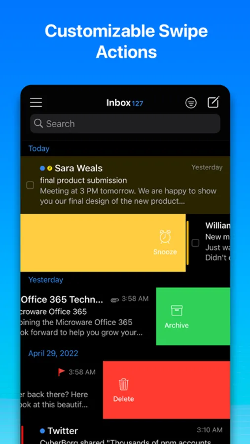 OneMail groups your emails by date so you can easily peek at the received time without the need to enter to the email.