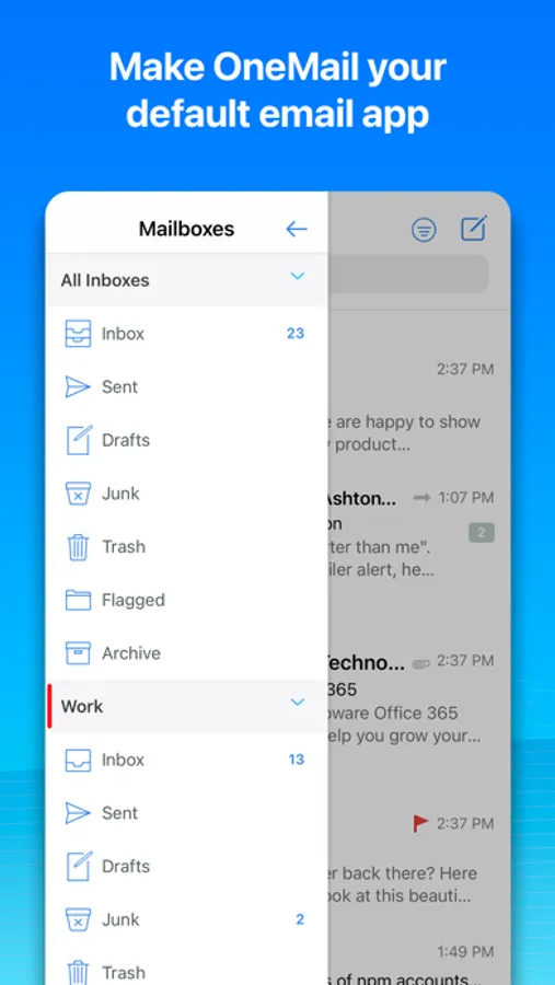 OneMail is designed to optimize the synchronization time between your inbox and you email provider.