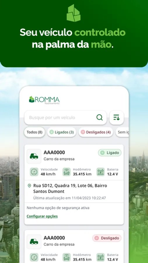 O Romma Rastreamento permite que você monitore os veículos rastreados pela Romma Rastreamento.
