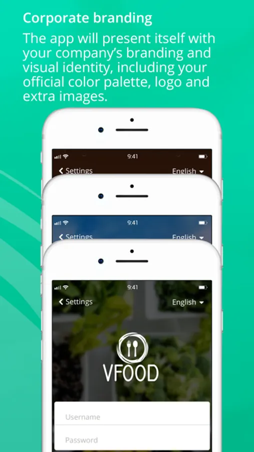 The app will be customized with your company’s branding including colors, logo and background images.