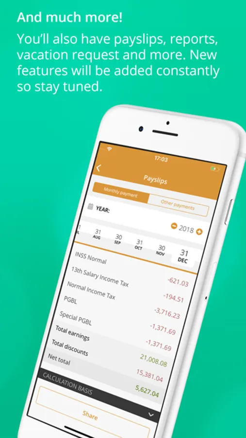 All of your payslips and other payment reports with accompanying graphs.