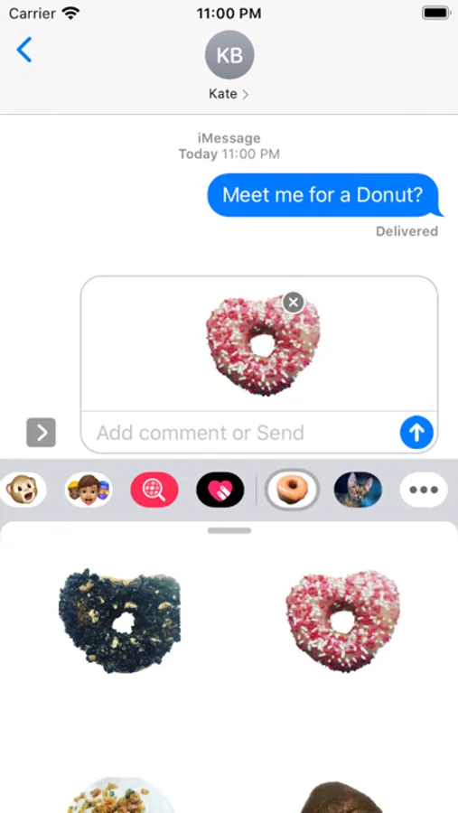 Nearly every day, chef Diane Reeder of the Kingston Candy Bar in Kingston, NY creates elaborate donut creations. Since every emotion can be expressed with an appropriate donut, these are now made available as 93 messaging stickers.