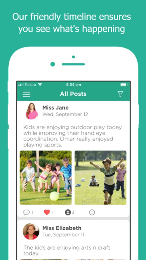 Get access to real-time data about your child including vital stats such as Food & Fluid Intake, Sleep Checks, Nappy Changes & other important information. Plus, parents receive photos, videos & updates throughout the day via social posting of their child learning and playing. You can also Book Casual Days, know what's happening with our Event Calendar and much much more.