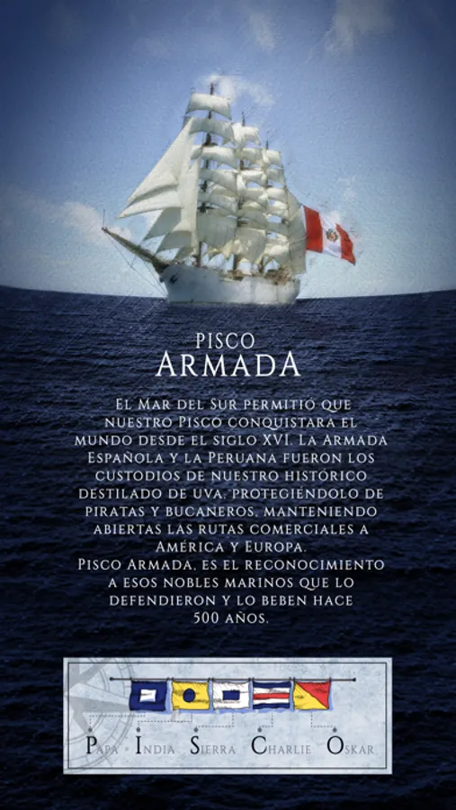 Descarga el App de Pisco Armada y encuentra un pasaje de nuestra historia. Se parte del épico viaje de nuestro Pisco a través de la realidad aumentada, surca los mares y comparte junto a valerosos marinos innumerables aventuras.