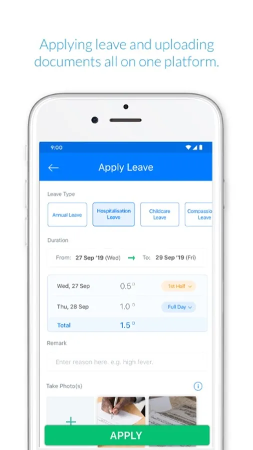 Capturing attendance is now fast and simple with QR code scanning. Simply Scan, Tap and Go. Leave applications can also be submitted by scanning your QR code to reach your profile, select leave type, leave date and submit.