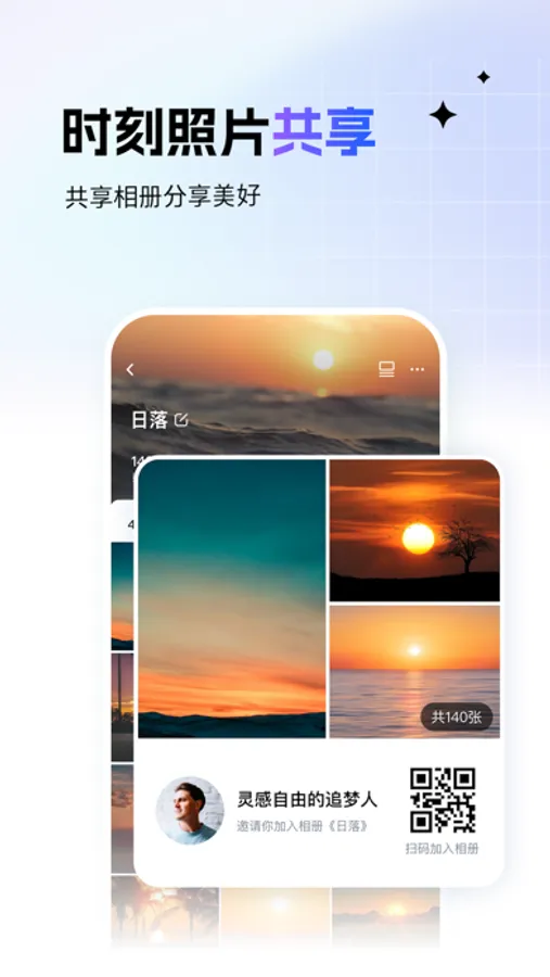 4、智能共享相册:你可以创建相册并邀请朋友共享;创建相册时添加人物,完成备份后会自动将他们的照片添加到相册,无需手动操作。