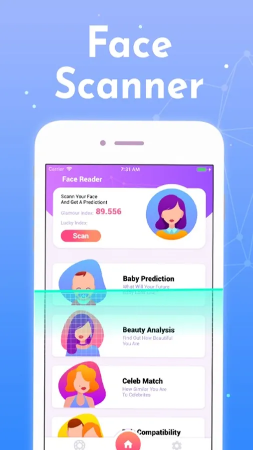 There are many mysteries behind your face: the situation of your health, the development of your wealth and the opportunity of your career. After scanning your face, Face analysis . will provide the details of your face and make a professional report for you, which can help you learn more about your face.