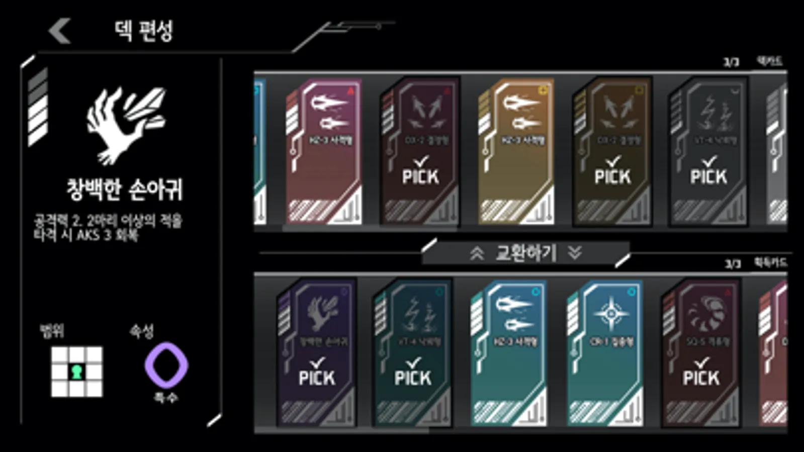 - 정통 로그라이크 스타일에 카드 요소를 섞은 전략적 전투