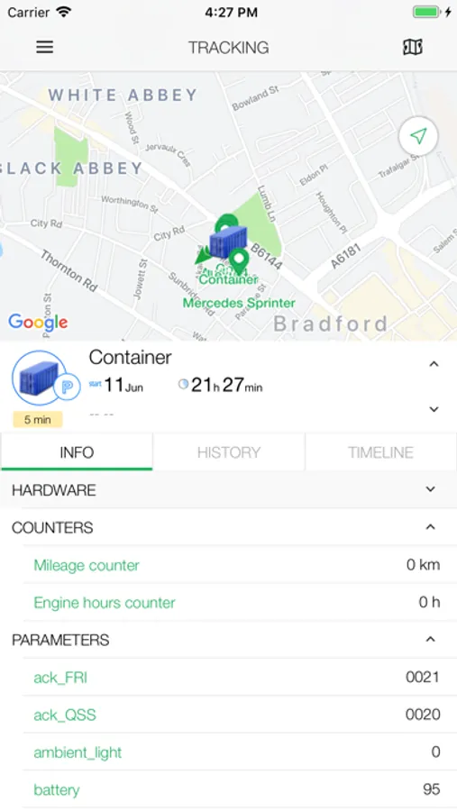 The multilingual native mobile application is available on our Local server. Unitracker Live client allows to manage monitoring unit list, providing immediate insight into activity of assets in a real-time mode.