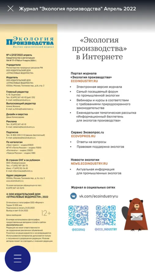 Журнал «Экология производства» — научно-практическое издание, освещающее актуальные темы промышленной экологии. Цель журнала – оказание информационно-методической поддержки специалистам экологических подразделений промышленных предприятий. Среди материалов журнала преобладают конкретные рекомендации, необходимые в повседневной работе экологам-практикам. Большое внимание уделяется вопросам изменений законодательства, оценкам негативного воздействия на окружающую среду, обращению с отходами, современным технологиям и оборудованию, обзорам зарубежного опыта. «Экология производства» — общепризнанный ориентир в решении насущных вопросов, стоящих перед специалистами природоохранных служб предприятий.