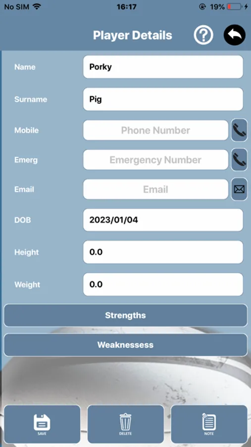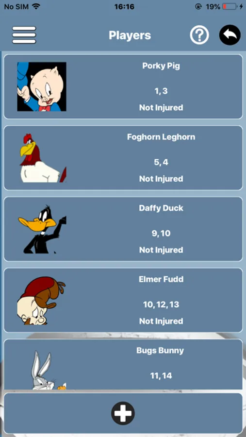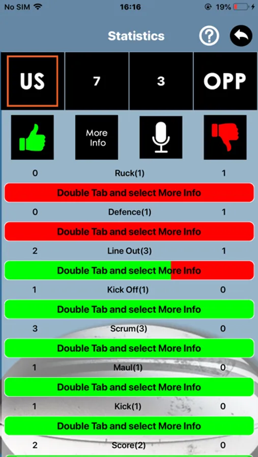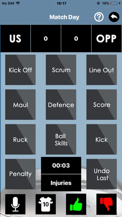 The Half Time Rugby app allows the coach to keep track of players and injuries.