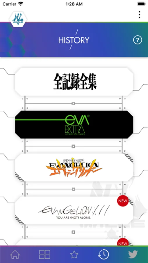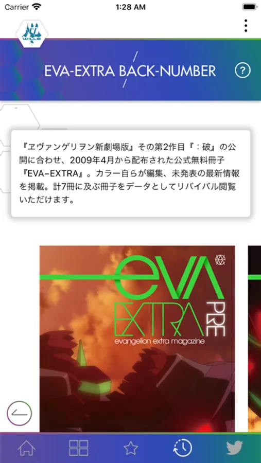 ・HISTORY各作品情報はこちらから。ダイジェスト映像、過去作品のパッケージに収録されていた特典映像など。 無料冊子版『EVA-EXTRA』リバイバル閲覧も可能。